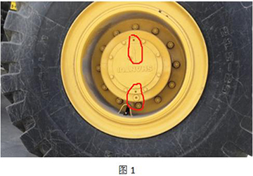3、     將塞堵拆下后(圖1),將廢油用備用桶收集后妥善處理,將塞堵上的異物清理干凈。放油完畢后轉(zhuǎn)動(dòng)輪胎,將箭頭方向指示朝下。